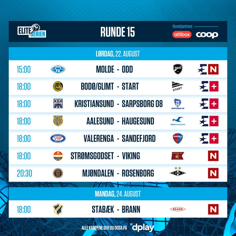 Grunnet søndagens Champions League-finale spilles den 15. serierunden lørdag. Her er en oversikt over hvor du kan få med deg Strømsgodset - Viking.