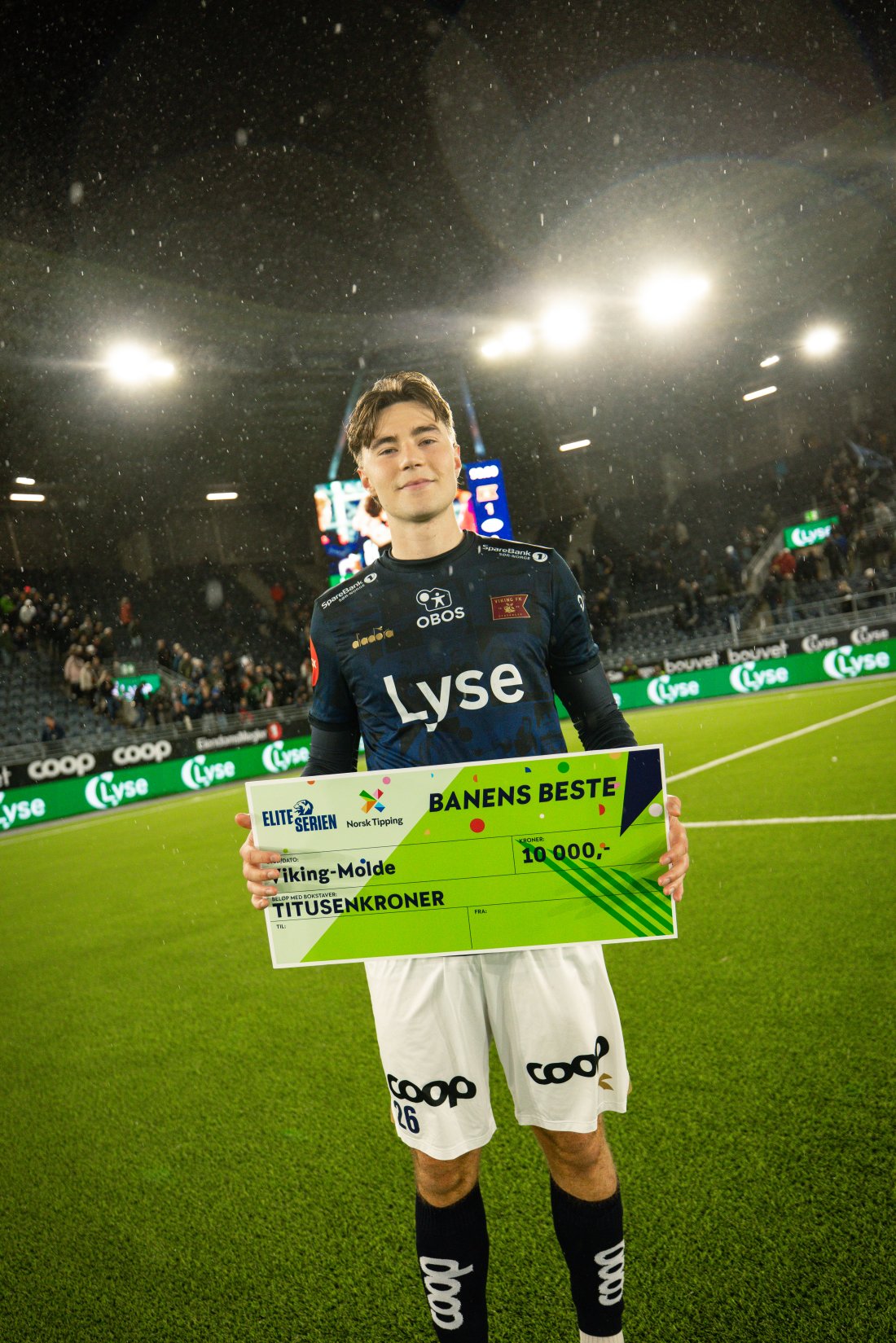 Og på banen? I pausen hadde showakademiet innslag med sangen "Kraft Og Kjærlighet". Viking leverte en sterk jubileumskamp. Simen Kvia-Egeskog ble den store helten da han scoret kampens eneste mål og sikret 1–0-seier mot Molde. Med en enorm innsats og matchvinnermålet ble han også kåret til banens beste.