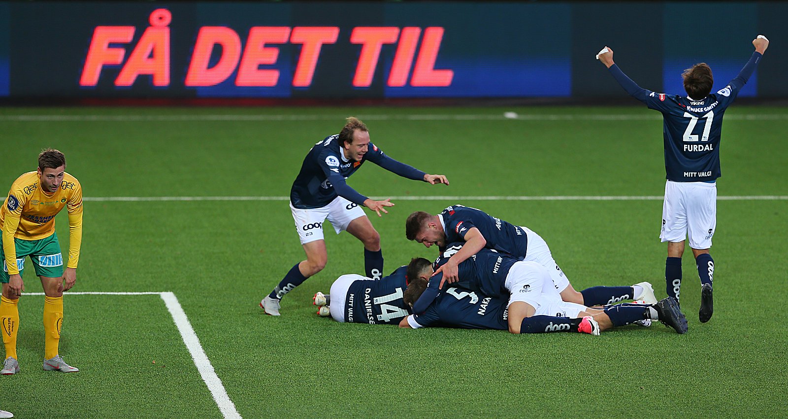 Målet førte til noen gledesscener man ikke har sett på en stund, og det var smil så langt øye kunne se. Klemmene satt løst. Folk ville ikke hjem. Johnny Furdal og resten av Viking-spillerne takket samtlige som kom. Og Iven Austbø brølte av glede så man kunne høre det over hele Jåttåvågen.