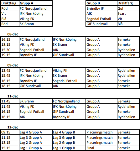 Spillerne ankom Sverige tirsdag. Gruppespillskampene går 8. til 11. desember, og Viking møter Brann i første kamp som spilles onsdag klokken 18.15.