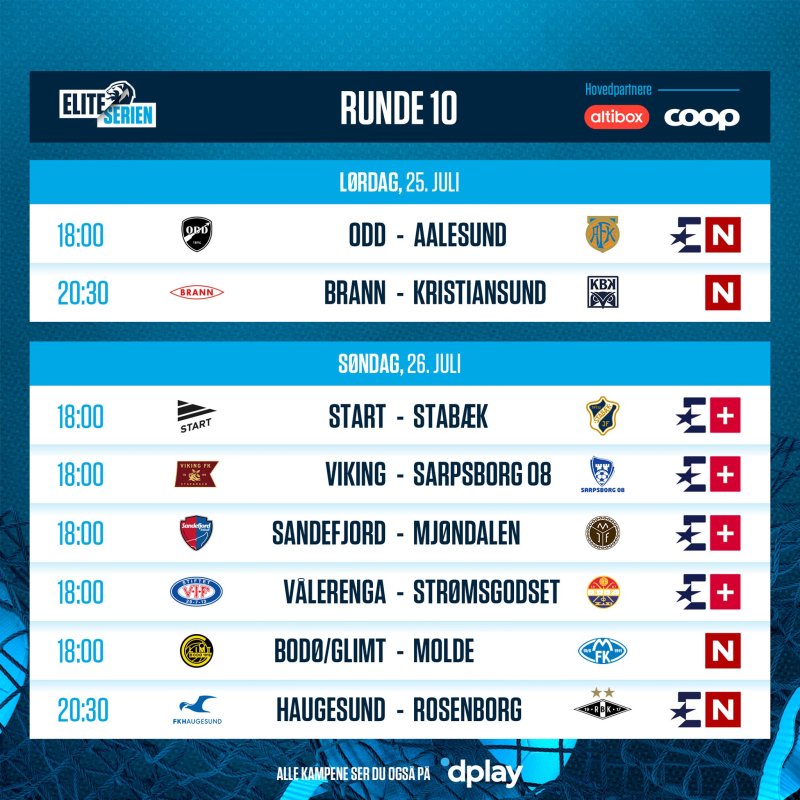 - TV: Alle TV-distributører (Altibox, Get, Riks TV osv.) har Eliteserien i en av sine pakker. Bare sørg for at du har det inkludert i din pakke. Kampen vises på Eurosport Pluss.